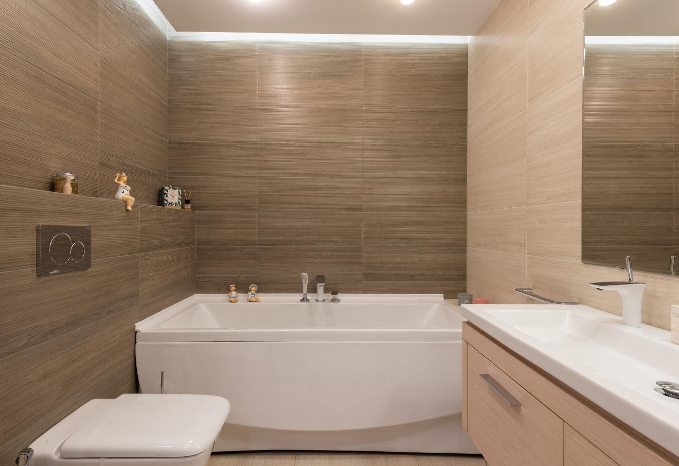 Spa-style bathrooms are all about serenity. Think soft, neutral colours like warm whites, taupes, light greys, or earthy tones. These shades make your space feel open and relaxing, and they pair beautifully with natural materials like wood, stone, or textured wall panels.